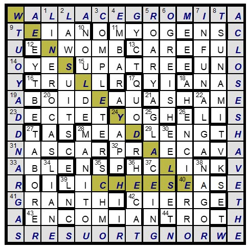 circled the grid. Solvers were required to SHADE FAVOURITE FOOD OF FIRST CHARACTER